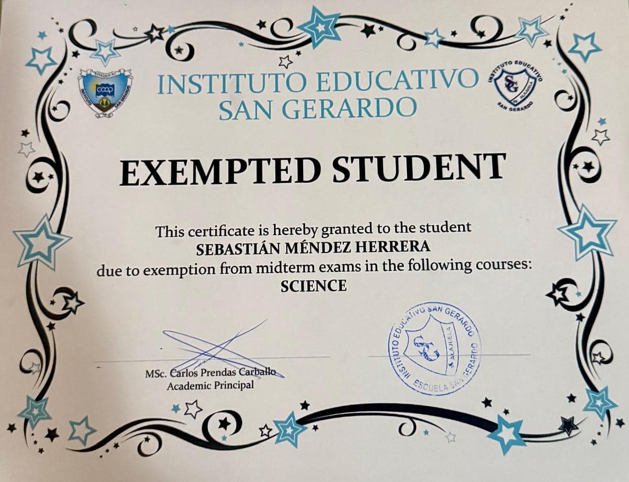 These are the most important projects I have done in school, and they include a magnetic levitation experiment in science fair, a presentation of the Third Industrial Revolution and how it changed the world at the STEAM expo with my group, and an entrepreneurship project at English day, where my group and I made keychains to sell. In another English day, we did a gastronomy project, and in art class, I painted several paintings and completed a photography project featuring pictures I took in San José, the capital of Costa Rica. However, the project that I liked the most is a sculpture of my pet Kira, which was a tribute I did for her when she died.